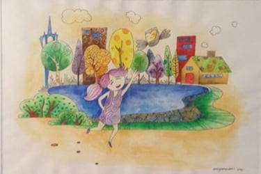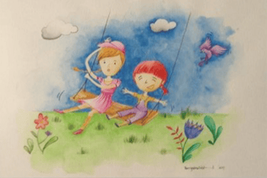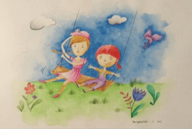Playing in the Garden, 397 x 520 mm, Watercolor and Ballpoint on Paper, 2007